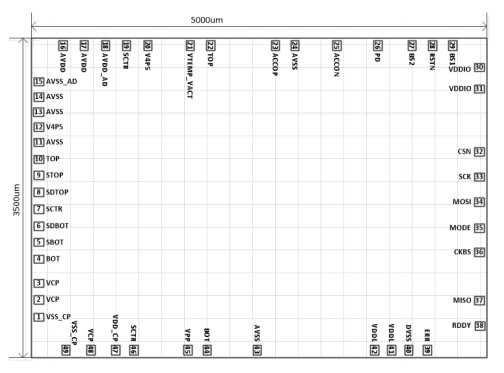| 编号 | PAD名称 | 管脚定义 | 坐标(X,Y)um |